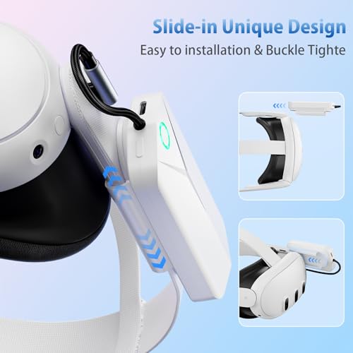 Wide Compatibility: The battery pack can snap into the Oculus Quest 3 and Oculus Quest 2 easily and tightly, compatible with original strap and elite strap. Great Oculus Quest 2/3 accessories for VR game lovers and will not add any significant weight to your VR headset.