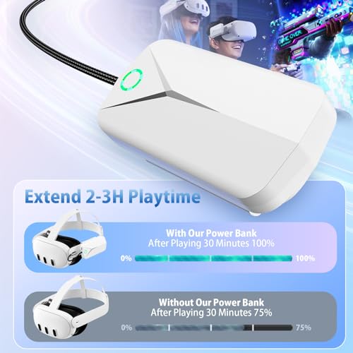 Extend VR Playtime: The latest-gen capacity was upgraded to 5000mAh. Add playtime for Oculus 2 and Oculus 3 to more than 2 hours and let you get rid of traditional VR charging troubles such as long link cable, heavy power bank. Give you much better VR gaming experience.