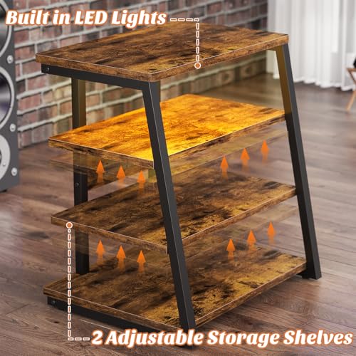 AV Media Stand with Outlets, Media Console with LED Lights, Stereo Racks and Stands with Storage Shelves, Media Audio Tower Cabinet, Rustic Brown